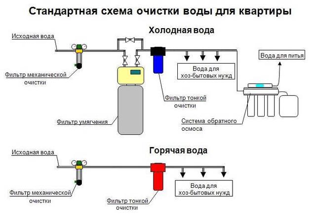 Готові рішення по очищенню води включають в себе комплекс установок різного призначення. Незалежно від призначення (для будинку, котеджу, кафе, ресторанів) схема очищення складається з кількох стадій.